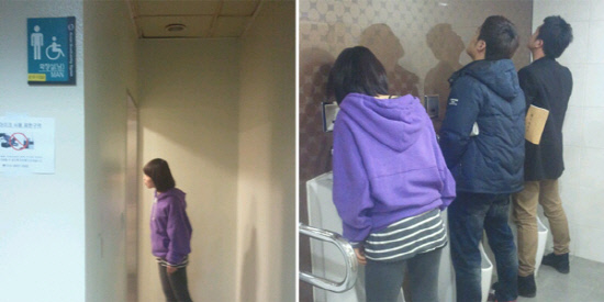 특히 남자들은 여자가 들어왔는지도 모르고 볼일을 계속 보고 있어 네티즌들을 폭소케 했다.