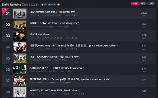 또한 일본에서 인기 K-POP 웹진 'Kstyle'에서 발매와 함께 공개된 박정민의 '뷰티풀' 뮤직비디오는 일간 뮤직비디오 차트 1위를 차지, 정상 유지 중이다.