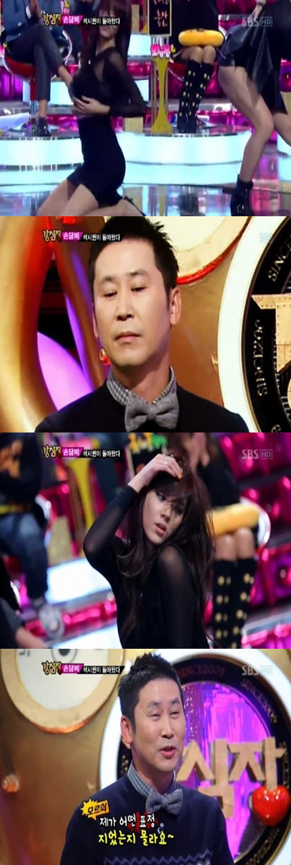 가수 손담비의 거침없는 섹시 몸짓에 신동엽이 넋을 잃었다.
