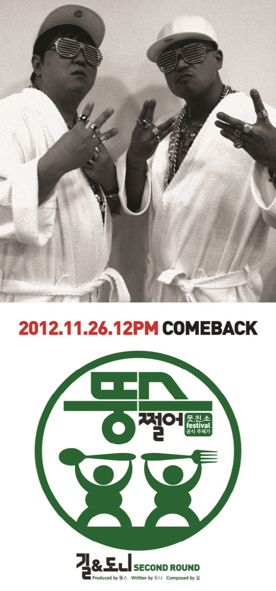 길은 22일 자신의 SNS에 "이승기 이하이 한 판 붙자…2012. 11. 26. 12pm 뚱스 컴백"이라며 사진 한 장을 게재했다. 공개된 사진에서 길과 정형돈은 무대 의상으로는 상상할 수 없었던 샤워 가운을 입고 셔텨쉐이드 안경에 각종 액세서리를 매치한 새로운 힙합 스타일을 선보이고 있다.