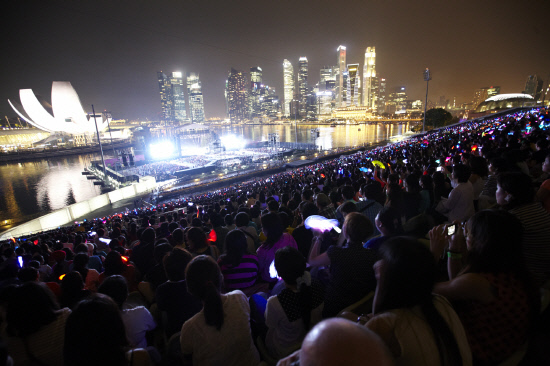 공연 시작 직전까지 천둥, 번개를 동반한 폭우가 쏟아지는 악천후였음에도, 수상 무대로 구성된 야외 공연장 '더 플롯 앳 마리나 베이'는 2만 6000여 관객들로 가득 찼다. 관객들의 뜨거운 함성과 각 아티스트를 상징하는 형형색색의 야광봉, LED 플랜카드 등은 마리나 베이를 화려하게 물들이기에 충분했다.