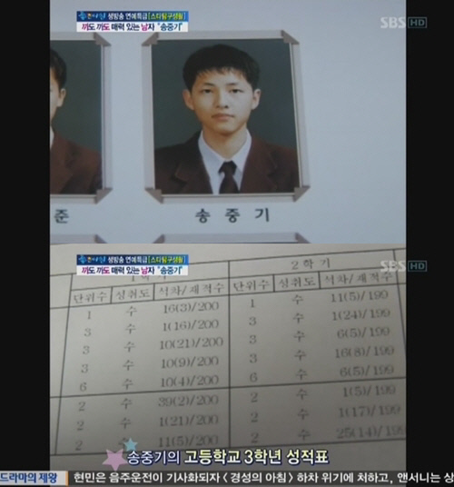 송중기 고3성적표가 공개됐다.