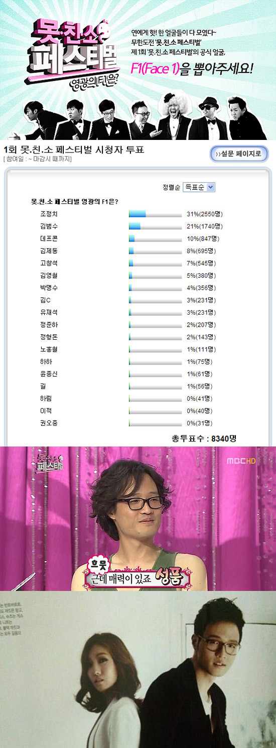 27일 현재 MBC 예능프로그램 '무한도전'의 공식홈페이지에서는 제1회 '못친소 페스티벌' 온라인 투표를 게재, 영광의 얼굴 F1을 가리고 있다.