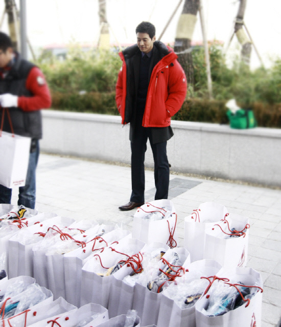 배우 이상윤이 KBS2 주말극 '내딸 서영이'의 전 스태프들에게 점퍼를 선물하며 훈훈한 분위기를 연출했다.
