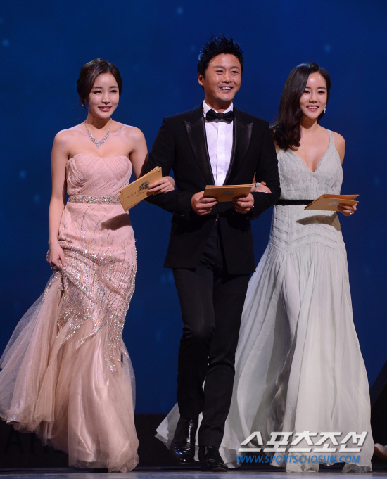 11월 30일 서울 세종문화회관에서 제33회 청룡영화상 시상식이 열렸다. 시상을 위해 공형진이 윤진이(왼쪽), 황우슬혜와 함께 무대에 오르고 있다. 세종로=최문영 기자 deer@sportschosun.com