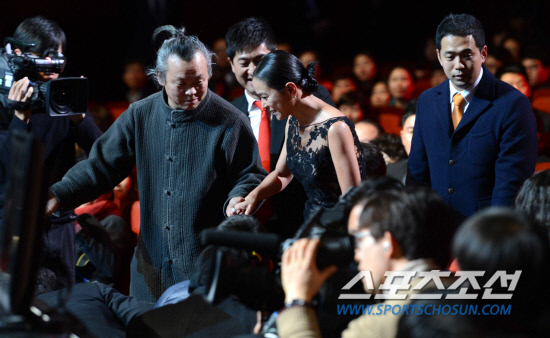 제33회 청룡영화상 시상식이 30일 세종문화회관에서 화려한 막을 올렸다. 최우수작품상을 수상한 '피에타'의 김기덕 감독과 조민수가 무대로 오르고 있다. 허상욱 기자 wook@sportschosun.com/2012.11.30/