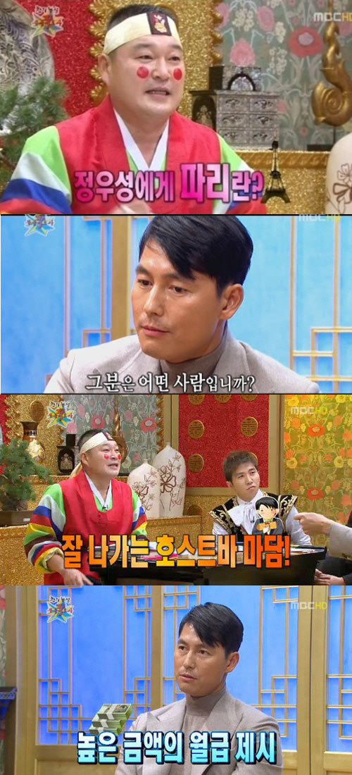 이 밖에도 이날 방송에서 정우성은 과거 호스트바에서 스카우트 제의를 받은 적이 있다고 고백해 관심을 집중시켰다.