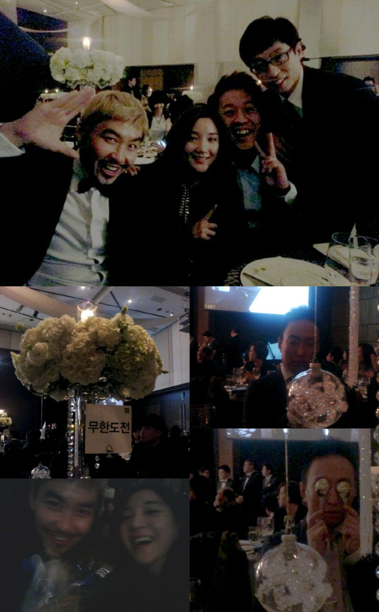 여러 장의 사진에는 결혼식이 지루한 듯 장난을 치는 박명수와 동료 후배의 결혼식에 마냥 즐거운 멤버들의 표정이 재미를 준다.