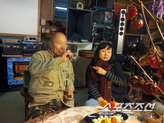작업실 내부의 바닥이며 지붕이며 문이며 골격이며 작품이며 오디오며 와인이며 모든 게 다 '그 자리'에 있었다. 와인을 마셨고, 치즈를 먹었고, 숙성된 깍두기를 먹었고, 1억5000만원에 이른다는 오디오 시설에서 터져나오는 음악을 음미했다. 그리고 그의 예술을 들었다.