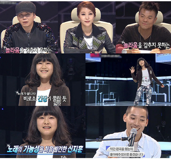 대부분 그러한 모습을 보인 어린 도전자들은 기죽어 하는 행동과 기어들어가는 목소리로 노래를 제대로 못 보여주고 탈락을 하는 모습을 보여왔다. 그러나 어린 도전자인 '신지훈'의 노래 첫 소절에 일동 경악을 금치 않을 수 없게 한 것은 그녀가 가지고 있는 가능성이 엄청나게 커 보였다는 것 때문이다.