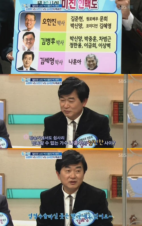 한편 이날 방송에서는 김세영 박사 외에도 김병후 박사와 오한진 박사가 다양한 분야의 연예인들과 남다른 친분을 공개해 관심을 모았다. <스포츠조선닷컴>