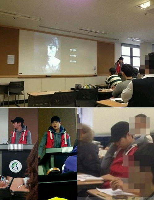 배우 송중기가 대학교 강의실에서 PPT 발표를 하는 모습이 포착돼 화제다.