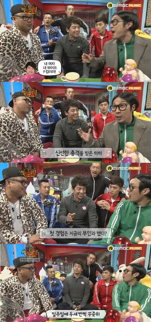 하하는 "당시 방송에서 스타들이 돌아가면서 각자의 아내 자랑을 했었다. 다들 요리실력 등을 칭찬하며 점잖게 말하는 가운데 권오중이 갑자기 '내 와이프, F컵이야'라고 말했다. 공중파에서 그런 발언을 했다는 것에 너무 신선한 충격을 받았다"고 권오중의 과감한 발언에 깜짝 놀랐던 과거를 회상했다.