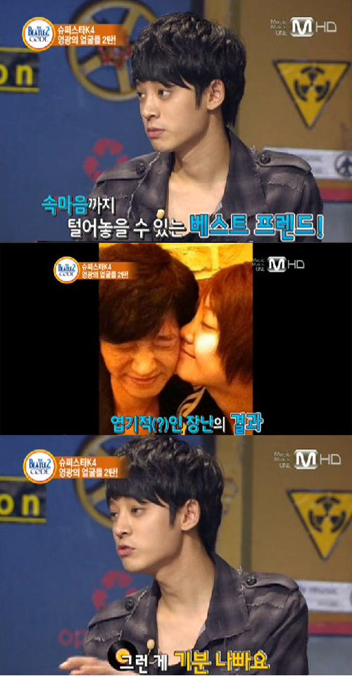 이에 MC 유상무가 "그럼 뽀뽀 셀카는 어떻게 된거냐"고 반문하자 정준영은 "그건 그냥 엽기적인 장난도 치면서 놀다가 뽀뽀하는 척 하면서 찍은 사진이다"고 과거 고은아와 열애설의 원인이 된 뽀뽀셀카에 대해 설명했다.