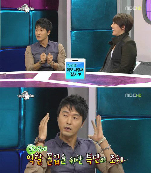 이어 "장동건씨는 알지 모르겠지만 밤에 고소영에게 '여보 사랑해 잘자♥'라는 문자를 보낸 적이 있다"고 단시간 역할에 몰입하기 위해 썼던 특단의 조치를 공개했다.