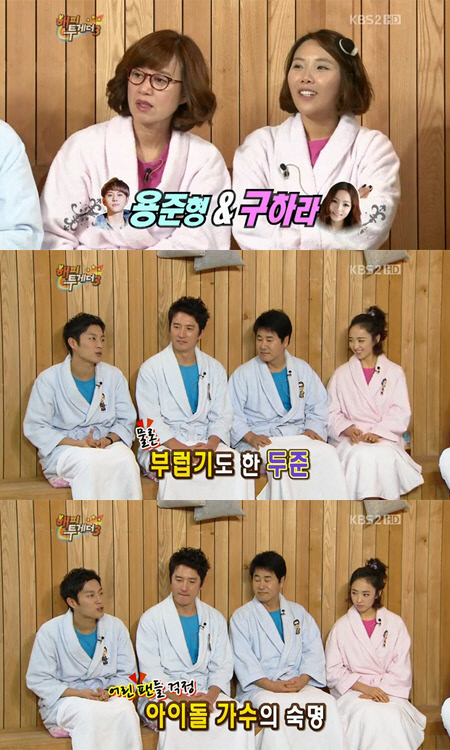 이에 MC들이 "동료를 보고 열애를 공개하지 말아야겠다는 생각을 했냐"고 묻자 윤두준은 "그런 게 좀 없지 않아 있다"고 답했다. 이어 "본인도 그렇고 부모님, 그리고 아이돌 가수이다 보니까 어린 팬들이 많다"며 "용준형 열애설이 터진 날 어린 친구들이 단체로 조퇴하고 울고 그랬다고 하더라"고 말해 놀라움을 샀다. <스포츠조선닷컴>