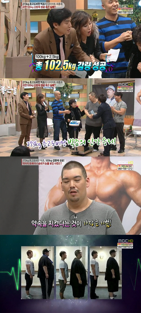 감격에 겨운 빅죠는 트레이너와 어머니를 포옹하며 기쁨을 만끽했다.