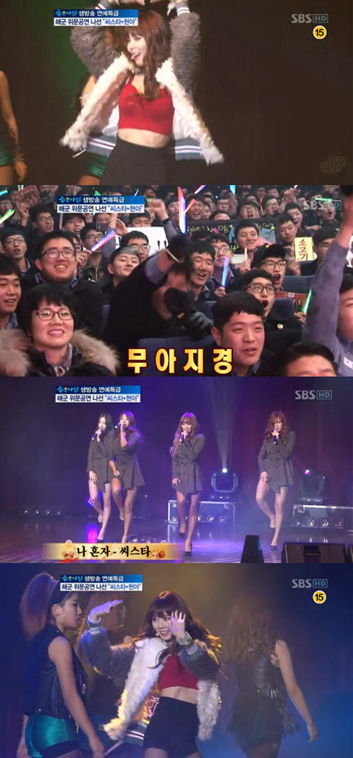 포미닛 현아와 씨스타가 해군 위문공연에서 '섹시댄스'로 군인들을 초토화 시켰다.