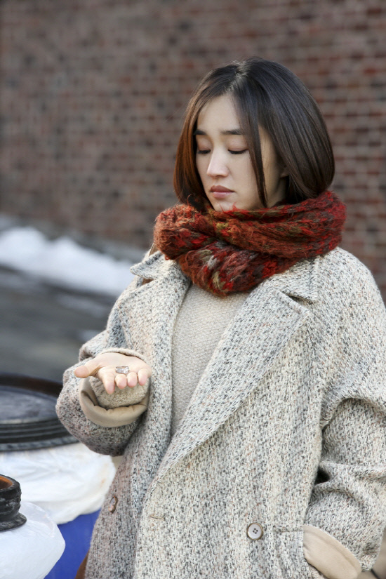 18일 제작사 베르디미디어가 공개한 사진에서 수애는 주택가 골목길에서 쓰레기통 뚜껑을 열고 반지를 집어던지고 있다. 이 장면은 서울 평창동에서 촬영된 것으로 극중 다해(수애)가 가정교사 자리를 구하려고 친구 집에 갔다 '가난하고 재수 없는 아이'라며 친구 엄마에게 모욕당한 뒤 반지를 훔쳐 음식물 쓰레기통에 버리는 설정이다. 아무런 대사도 없이 반지를 던지는 동작만 있지만, 제작진은 리얼리티를 살리기 위해 100만 원짜리 백금반지(모조 다이아)를 준비했다. 또 투명한 플라스틱 통 속에 돼지죽처럼 반죽된 음식물을 담은 뒤 반지에 미세한 수술용 봉합사를 감고 통 밑 바늘 구멍으로 잡아당겨 반지가 서서히 가라앉는 장면을 특수 카메라로 촬영했다. 수애는 혹한의 추위에서도 2시간 동안 맨손으로 30번이나 해당 장면을 반복 촬영, 다양한 표정 연기로 스태프의 박수를 받았다는 후문.