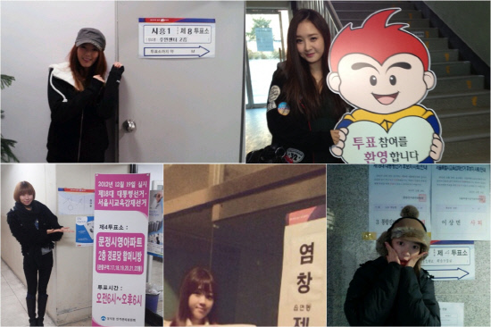 1994년생 막내 수빈을 제외한 달샤벳 멤버 전원은 19일 오전 각자 집 근처 투표소에서 '제18대 대통령선거·서울특별시교육감재선거' 투표를 마쳤다.