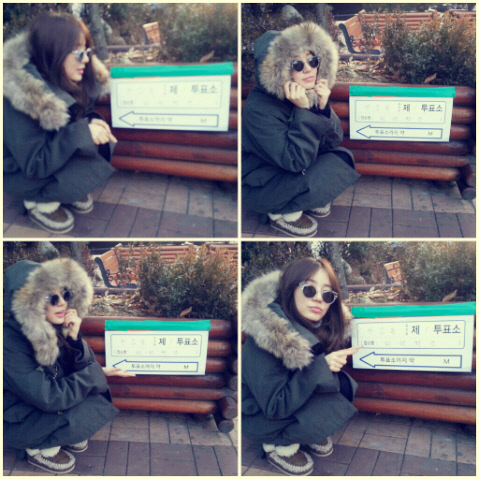 윤은혜는 19일 자신의 트위터에 "촬영장 가기전에 투표 완료 !! 인증샷 찍을만한 장소가..ㅋ 불쌍하게 찰칵! 많이 추워용~ 저처럼 옷 따숩게 입구 나오셔요"라는 글과 함께 인증샷을 공개했다.