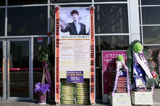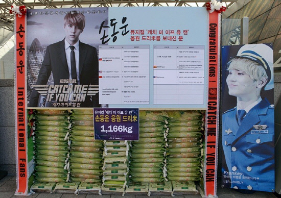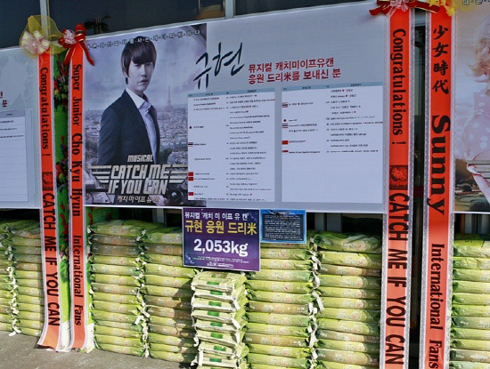 비스트 손동운의 이름으로도 한국 미국 중국 대만 말레이시아 스페인 등 6개국 팬들이 1.166톤의 쌀 화환을, 소녀시대 써니에게는 한국 중국 일본 대만 인도네시아 태국 싱가포르 말레이시아 등 8개국 팬들이 쌀 1.999톤과 연탄 238장을 보냈다. 샤이니 키 앞으로는 한국 중국 일본 대만 싱가포르 태국 등 7개국 팬들이 쌀 603kg과 영탄 550장을. 슈퍼주니어 규현의 이름으로는 한국 일본 중국 대만 태국 싱가포르 등 6개국 팬들이 쌀 2.05톤을 보내 눈길을 끌었다.