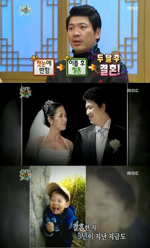 김상경은 지난 20일 방송된 MBC '황금어장-무릎팍도사'에 출연해 치과의사인 아내 김은경 씨와의 러브스토리와 결혼 사진 등을 공개했다.