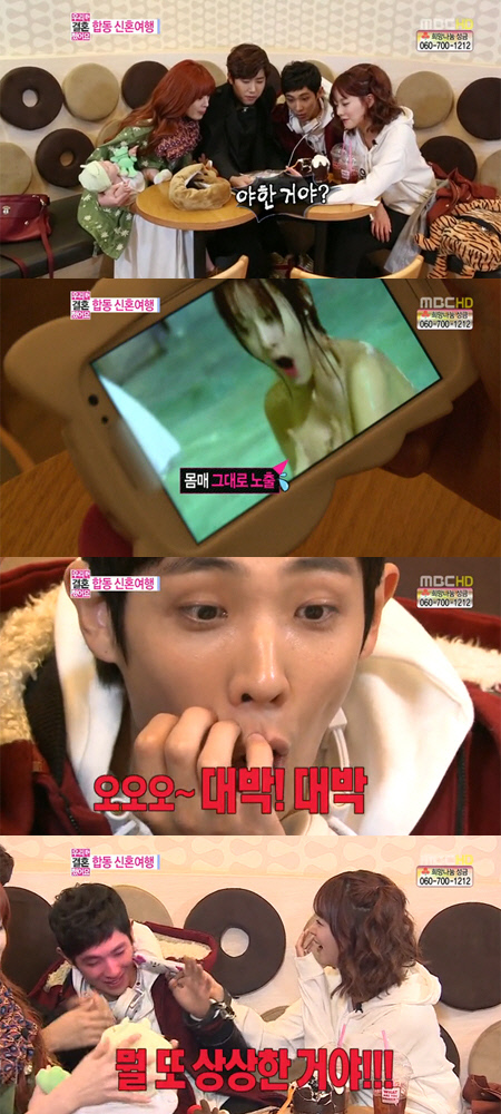 한선화는 오연서에게 "드라마에서 언니 몸매 보고 깜짝 놀랐다"며 말을 꺼냈고, 황광희 또한 "수영복 끈이 없어지는 걸 봤다"며 "MBC 엘리베이터에서 몇 번을 봤다"고 호들갑을 떨었다.