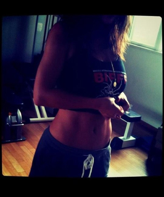 트레이닝복 바지에 탱크톱 상의 차림으로 배와 허리라인이 적나라하게 드러난 가운데, 나이를 무색케 하는 11자 근육과 초콜릿빛 복근이 보는 이의 감탄을 자아낸다.