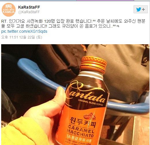 카라 박규리가 팬들에게 깜짝 음료수 선물을 했다.