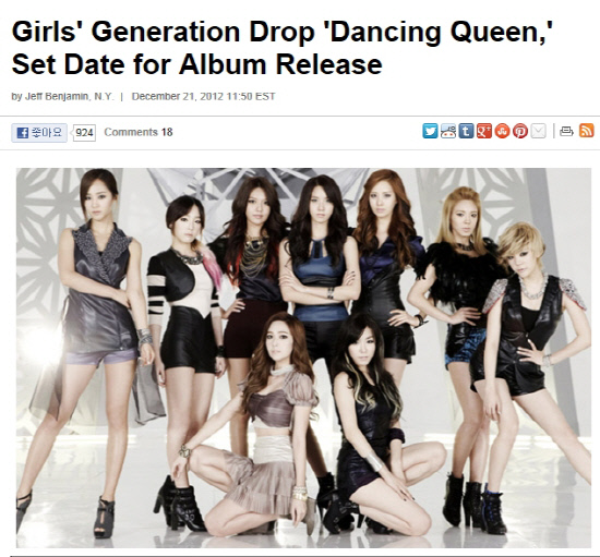 빌보드는 21일 "소녀시대가 내년 1월 새 앨범 '아이 갓 어 보이'로 컴백한다. 정식 앨범 프로모션은 내년 1월부터 시작되지만, 선공개한 '댄싱퀸'의 반응부터 심상치 않다"고 밝혔다. 이어 "'댄싱퀸'은 그래미에 노미네이트됐던 더피 '머씨'를 리메이크, 펑키팝 사운드와 일렉트로닉 사운드로 새롭게 해석했다. 유닛그룹인 태티서 '트윙클'과도 비슷하다"며 "2012년은 싸이 '강남스타일'의 해였다. 하지만 소녀시대 역시 유튜브 가장 많이 본 동영상의 주인공이었다. 이번 컴백을 통해 소녀시대는 K-POP의 중심에 있다는 것을 모두에게 각인시킬 것이다. 이들은 2013년 왕관을 되찾을 준비가 됐다. 적어도 2주 안에는 무척 성공적인 컴백을 할 것"이라고 전했다.