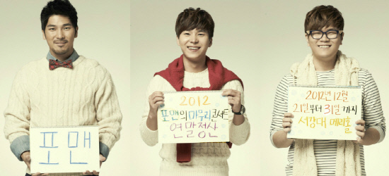 포맨은 21일부터 31일까지(26, 27일 제외) 9일간 서울 마포구 서강대학교 메리홀에서 '2012 마무리 콘서트 연말정산'을 진행한다.
