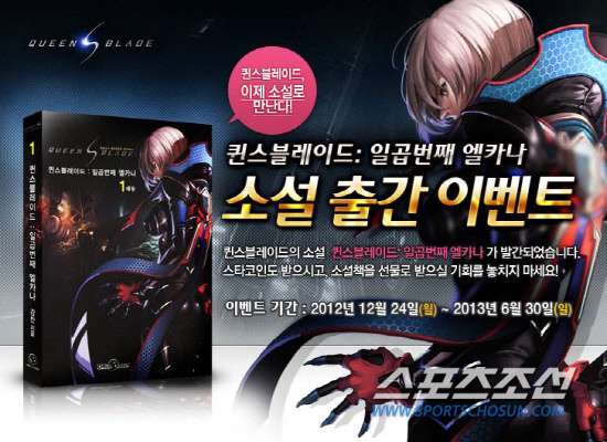 라이브플렉스는 '퀸스블레이드 : 일곱번째 엘카나' 발간을 기념해 내년 6월 30일까지 이벤트를 진행한다. 소설의 초판을 구매한 모든 독자에게 게임 캐시를 지급해 바로 사용할 수 있게 할 예정이다.