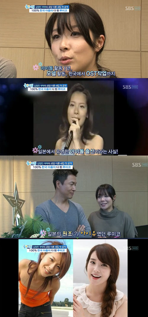 이에 김정민은 "내 눈에는 아이유보다 루미코가 낫다"면서 아내를 자랑한 뒤 "이 방송 잘못 나가면 안티 100만 명 생기겠다"고 말해 웃음을 자아냈다.