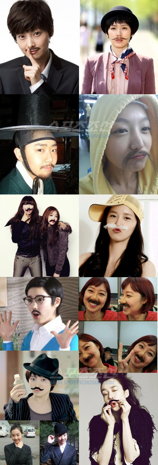 사진은 이나영, 손예진, 문근영, 신소율, f(x)설리-빅토리아, 소녀시대 윤아, 아이유, 공효진, 송혜교, 임수정 등이 콧수염을 붙이고 남장하고 있는 모습.