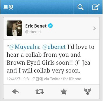 브라운아이드걸스 제아의 솔로 앨범에 세계적인 팝스타 에릭 베넷이 함께했다.