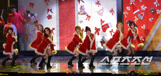 2012 멜론 뮤직 어워드가 14일 올림픽공원 체조경기장에서 열렸다. 티아라가 산타복장을 하고 공연을 펼치고 있다. 멜론 뮤직 어워드 시상 부문으로는 '멜론 뮤직 어워드 Top10'을 비롯해 아티스트상, 앨범상, 글로벌 아티스트상 등 주요상 5개 부문과 인기상, 뮤직스타일상, 특별상, 뮤직스타일상 팝 부문 등 총 16개 부문에서 이뤄진다. 시상 부문 역시 멜론 이용자 투표 결과를 반영하며, 글로벌 아티스트상 선정에는 유튜브의 조회수 및 인기도를 반영한다. 올림픽공원=전준엽 기자 noodle@sportschosun.com/2012.12.14/