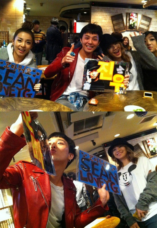 이어 션은 "지용아 그러니까 션형이 더 좋아? 지누형이 더 좋아?"라는 글과 함께 재미있는 사진 하나를 더 공개했다. 이 사진에는 지드래곤이 션과 지누의 응원문구가 적힌 플랜카드를 양손에 들고 장난치는 개구진 모습이 담겨있다. 션의 멘션과 사진이 절묘하게 맞아 웃음을 유발한다. 이 사진들은 지난 1월 일본 오사카 교세라돔과 사이타마 수퍼 아레나에서 열린 YG 패밀리 15주년 일본 콘서트 이후 뒤풀이 자리에서 찍은 것으로 전해졌다.
