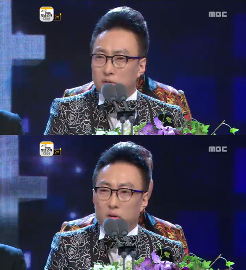 박명수는 이날 수상 소감에서 "너무 기쁘다. 정말로 눈물이 난다. 울지 않으려고 참고 있는데 속으로는 울고 있다"며 "평생 바라던 상이다. 2인자여서 대상을 받기는 어렵지 않을까 생각했다. 올해 20년째 방송을 하고 있다. 혹자는 MBC 직원이라고도 한다. 간염에 걸렸을 때도 그렇고 지금까지 단 일주일도 방송을 쉰 적이 없다. 스스로도 대견하다"고 밝혔다.