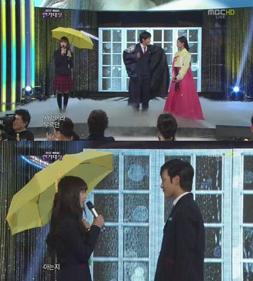 여진구, 김유정, 김소현은 시상식 도중 한 편의 뮤지컬을 연상시키는 깜짝 무대를 선보이기도 했다. 김유정이 '해를 품은 달'에서의 단아한 한복 차림으로 OST '시간을 거슬러'를 부르던 도중 여진구가 세자의 곤룡포 차림으로 등장해 "잊어달라 하였느나. 잊어주길 바라느냐. 미안하다 잊으려 하였으나 너를 잊지 못했다"라는 명대사를 선보였다.