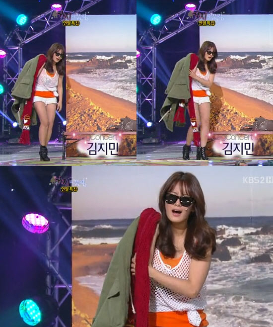 이 후 방송을 본 네티즌들은 "공약 지킨 김지민 멋집니다", "예쁜 개그우먼 김지민, 몸매도 늘씬해", "해변내용이라 비키니를 시대했는데, 아쉽네요"등의 반응을 보였다. <스포츠조선닷컴>