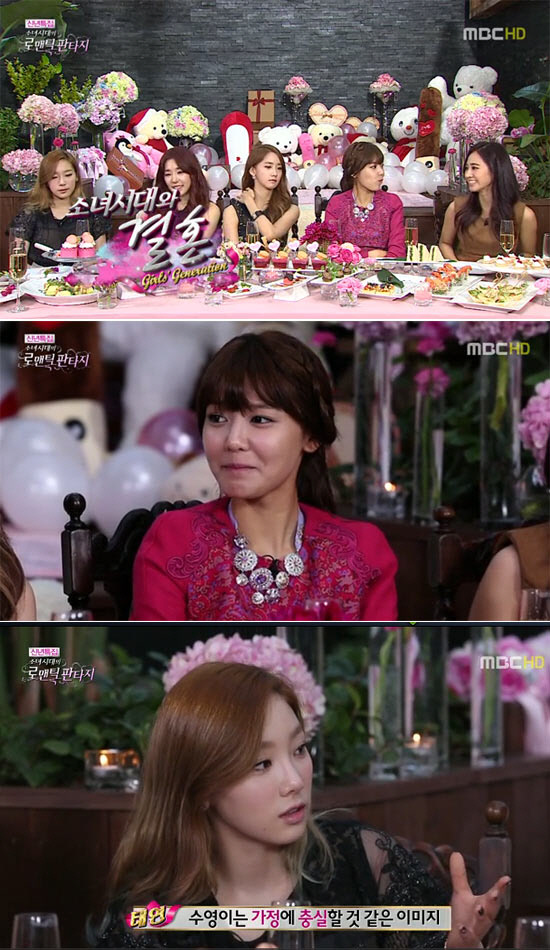 이어 소녀시대는 결혼 시기에 관해 일부를 제외하고는 대부분 30대에 하고 싶다고 밝혔다. 이에 효연이 "우리 처음 결혼 할 사람한테 몰아주기하자"라고 제안하자 수영은 "소녀시대 결혼 계를 들자"고 맞받아쳐 멤버들의 웃음을 자아냈다.