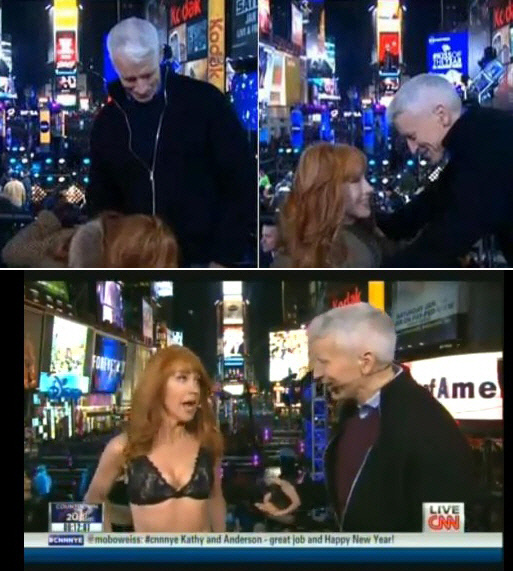 방송 도중 케이시 그리핀은 앤더슨 쿠퍼의 하체로 얼굴을 갖다 대며 유사성행위를 하는듯한 장면을 연출해 시청자들을 경악케 했다. 신년인사를 서로 주고받는 과정에서 케이시 그리핀이 이 같은 돌발 행동을 한 것.