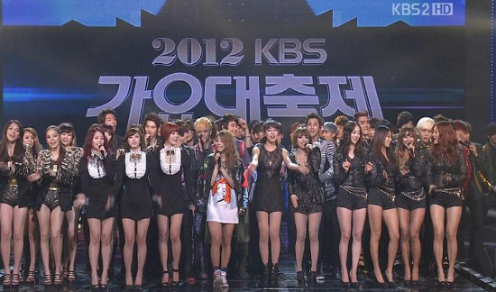 사진은 지난 12월 28일 '2012 KBS 가요대축제'중 다함께 무대에 올라 마지막 피날레를 장식하는 모습을 캡처 한 것.