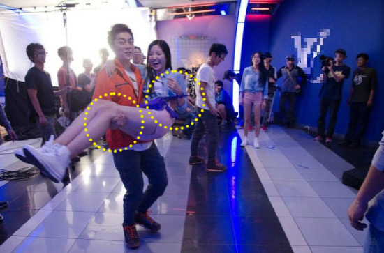 연기자로 변신한 윤두준이 주황색 셔츠에 청바지 패션을 선보이며 분홍색 핫팬츠를 입고 있는 손나은을 안고 있는 모습이다. 짧은 하의를 입고 있는 손나은은 다리가 그대로 노출되며 긴 각선미를 드러내 눈길을 끌고 있다.