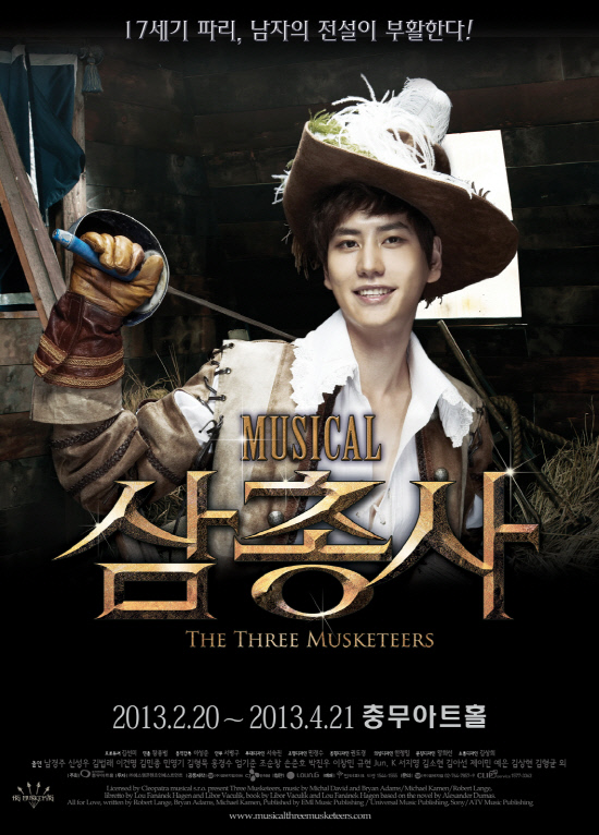 '삼총사'는 17세기 프랑스를 배경으로 왕실 총사가 되길 꿈꾸는 달타냥과 왕의 친위부대 삼총사 아토스, 포르토스, 아라미스의 모험과 우정을 박진감 넘치게 그려낸 작품. 김민종은 극중 날카로운 추리력과 통찰력을 갖춘 로맨티스트 검객 아라미스 역을 맡아 데뷔 20년 만에 처음으로 뮤지컬에 도전하게 됐다. 2010년부터 3년 연속 '삼총사'에 출연했던 규현은 이번에도 총사가 되기 위해 파리로 상경하지만 불의를 보면 참지 못하는 열혈 청년 달타냥 역에 캐스팅됐다. J-Min은 달타냥이 첫 눈에 반하는 사랑스러운 여인 콘스탄스 역을 맡았는데, 뮤지컬 '잭 더 리퍼'를 통해 뛰어난 가창력과 감성 연기로 가능성을 인정받은 만큼 이번 작품에서 어떤 연기를 보여줄지 기대가 높아지고 있다.