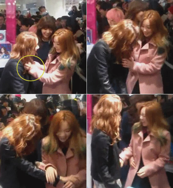 소녀시대 윤아가 리더 태연에게 '멱살잡이'를 당한 모습이 포착됐다.