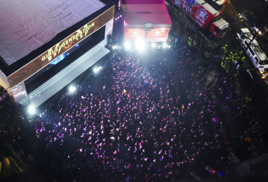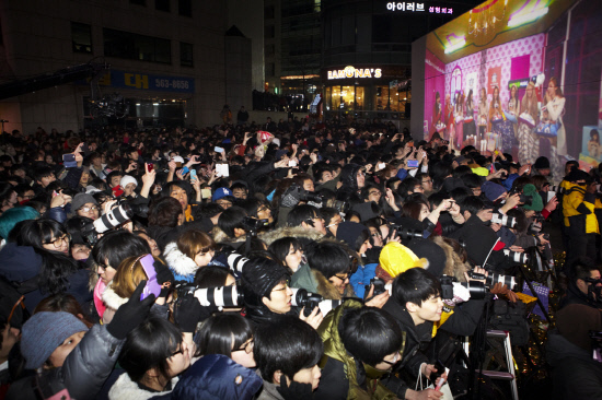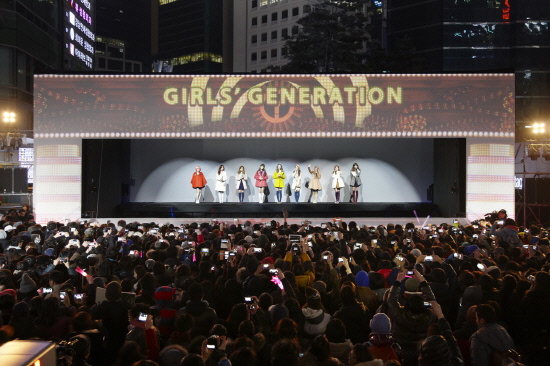 지난 5일 오후 8시, 서울 강남역사거리 엠스테이지에서 열린 소녀시대 'V 콘서트'는 한파가 불어 닥친 추운 날씨에도 공연 시작 3~4시간 전부터 강남역 일대가 마비될 만큼 수많은 사람들이 운집해, 소녀시대에 대한 뜨거운 관심을 실감케 했다.