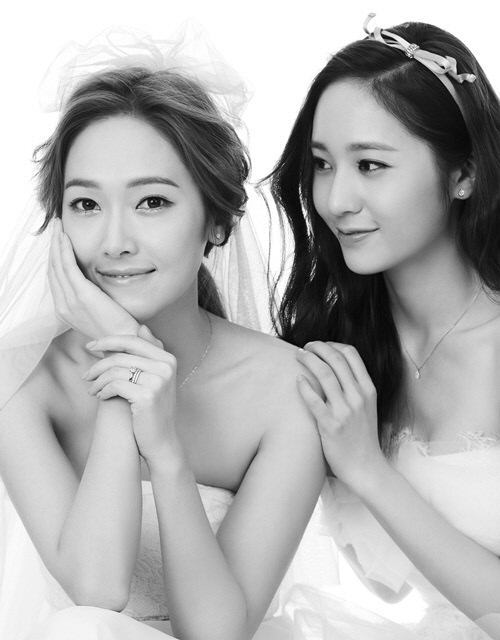 '정자매' 소녀시대 제시카와 에프엑스 크리스탈이 나란히 웨딩드레스를 입고 미모를 과시했다.