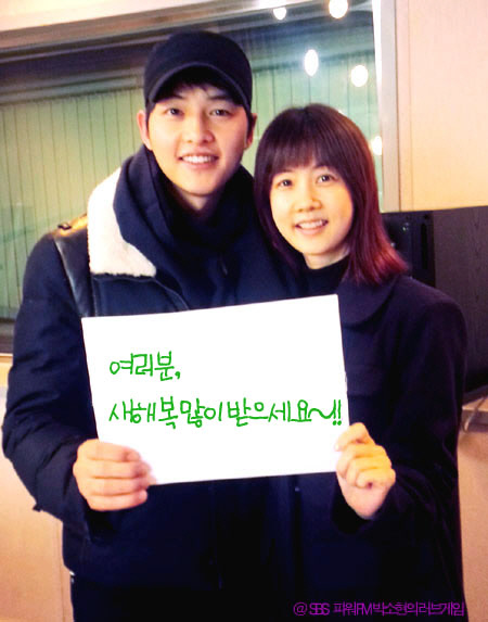 이를 들은 DJ 박소현은 여배우에 대해 물었고, 송중기는 "말씀드릴 수는 없지만 비슷한 시기에 방송한 작품이다"라고 말해 궁금증을 자아냈다.